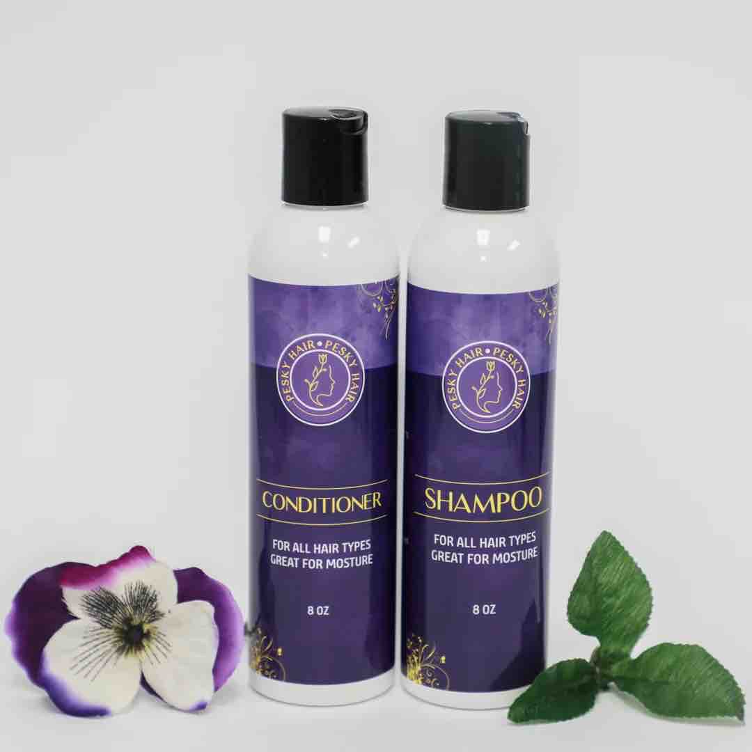 Experience hair nirvana with Pesky Hair's dynamic Shampoo and Conditioner duo.